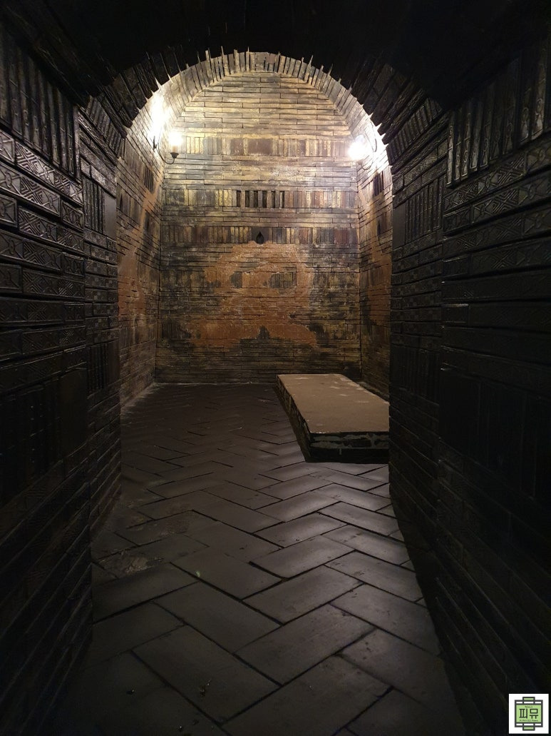 - 1971년 배수로 공사 중 우연히 발견된 무령왕릉 내부를 실물 크기(1:1)로 재현해 놓은 공간입니다.