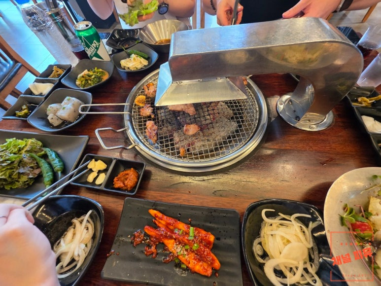 장호더그릴은 고품질 참숯을 사용하여 겉은 바삭하고 속은 촉촉한 닭갈비를 제공하는 것이 특징입니다.