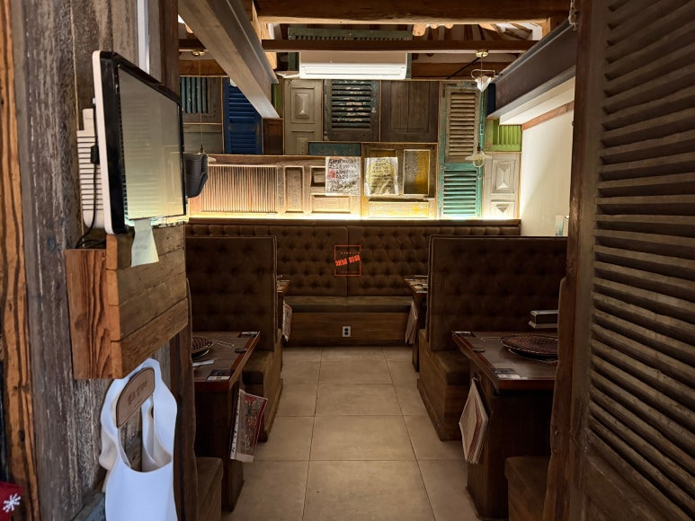 - 다양한 좌석: 주방을 마주 보는 'ㄷ'자 형태의 바(다찌) 좌석은 혼밥을 즐기기에도 좋으며, 고기를 구워 먹을 수 있는 4인석 테이블도 마련되어 있어 모임 장소로도 적합합니다.